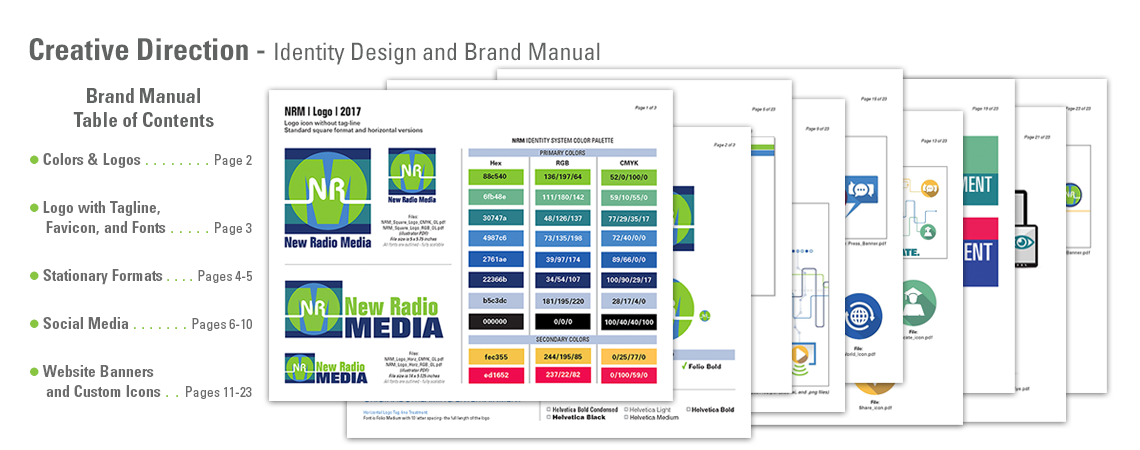When New Radio Media (NRM), an on-demand media startup, needed a Corporate Identity Design (ID) System to communicate their unique story, they hired MRL Visuals to assist with the task.